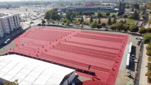 We proudly carpeted the Ironman race in Sacramento with an impressive 100,000 square feet of vibrant red carpet in the bicycle area, transforming the event into a stunning visual experience. Our meticulous installation showcased our commitment to quality and attention to detail, enhancing the overall atmosphere of this prestigious triathlon. The bold red carpet not only marked the path for athletes but also created an inviting environment for spectators and participants alike. Our exceptional work played a crucial role in elevating the event and ensuring that the Ironman race remained a memorable occasion for everyone involved.
